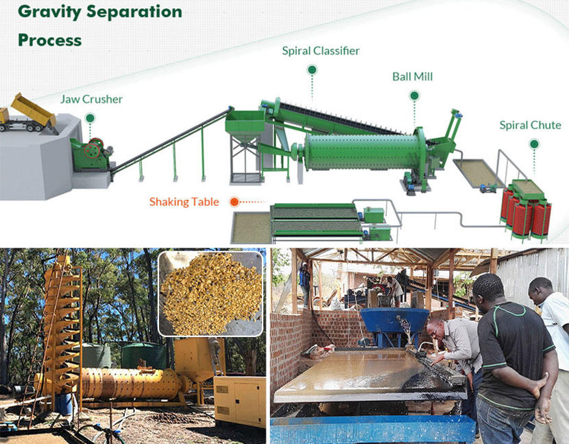 Mainly Equipment: stone crusher, ball mill, shaking table, spiral classifier, spiral chute, etc.