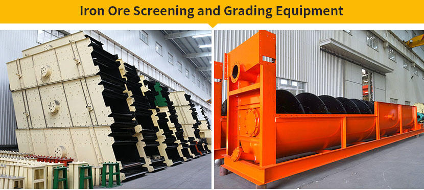 3. iron Ore Screening and Grading Washing Equipment: vibrating screen and spiral classifier;