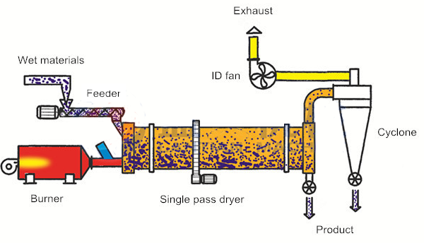 4. There are 50% reductions of floor area and 50% lower civil engineering investments contrast with traditional single-tube rotary drying machine