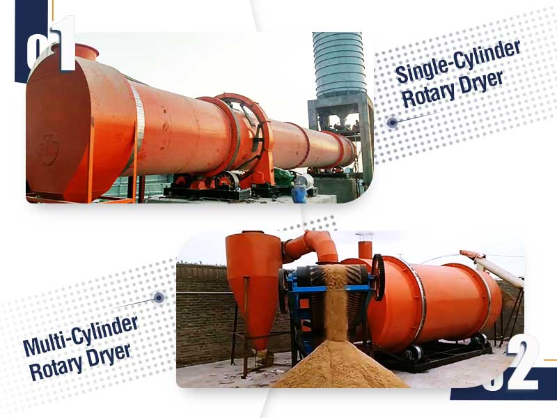 Main types of rotary drying machine are: industrial mineral dryer, iron ore dryer, fly ash dryer, coal dryer, quartz sand dryer, gypsum dryer, phosphate dryer, mineral powder dryer, ore concentrate dryer, bauxite dryer, sand dryer, rotary drum dryer, sludge dryer, airflow dryer and so on.
